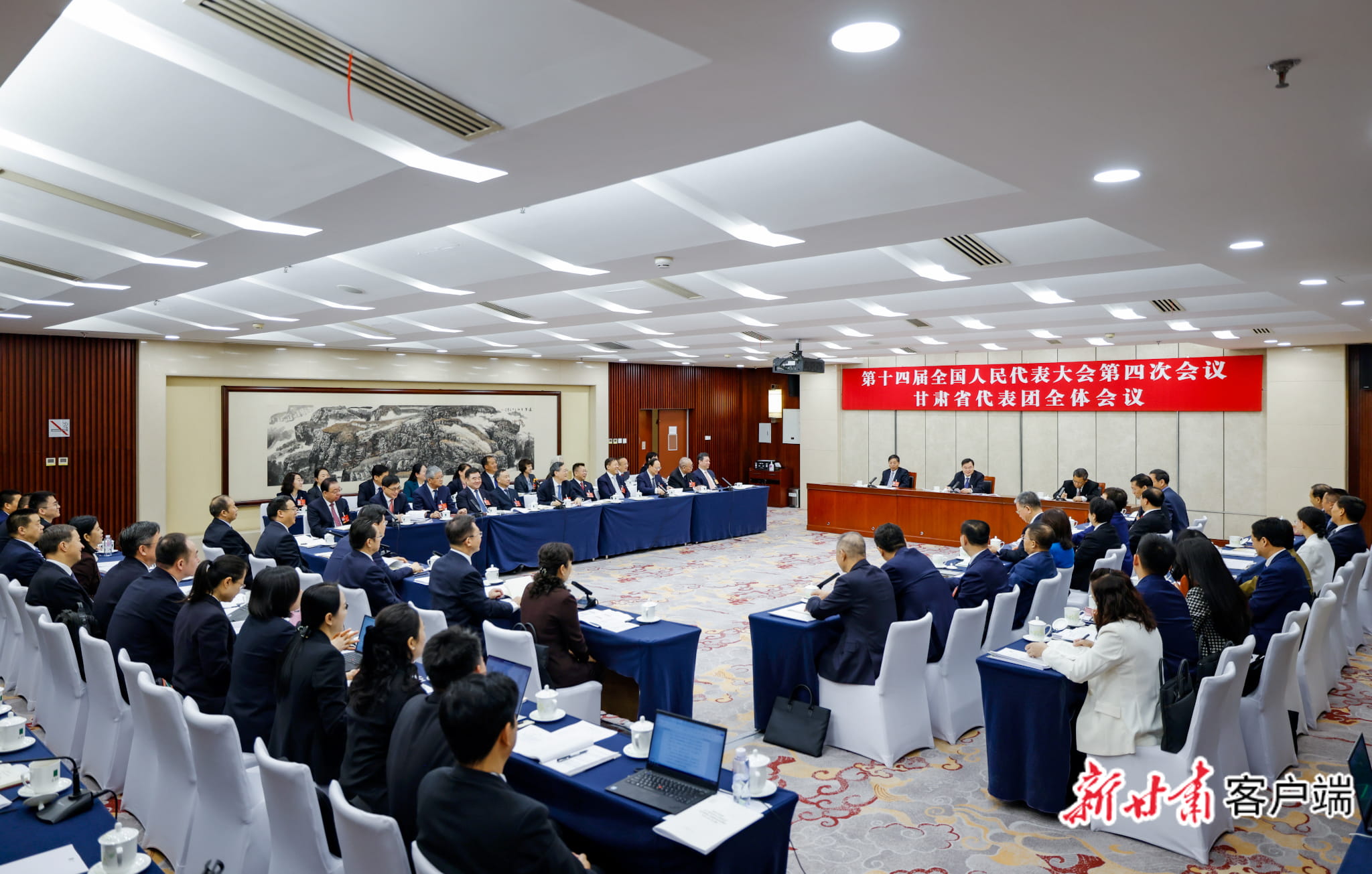 3月11日,十四屆全國人大四次會議甘肅代表團在駐地舉行全體會議。繼續(xù)審議全國人大常委會工作報告、最高人民法院工作報告、最高人民檢察院工作報告。(新甘肅·甘肅日報記者孟捷)